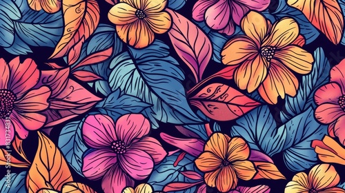 © TheWaterMeloonProjec, Naklejka premium Hand drawn seamless pattern of flowers and leaves
