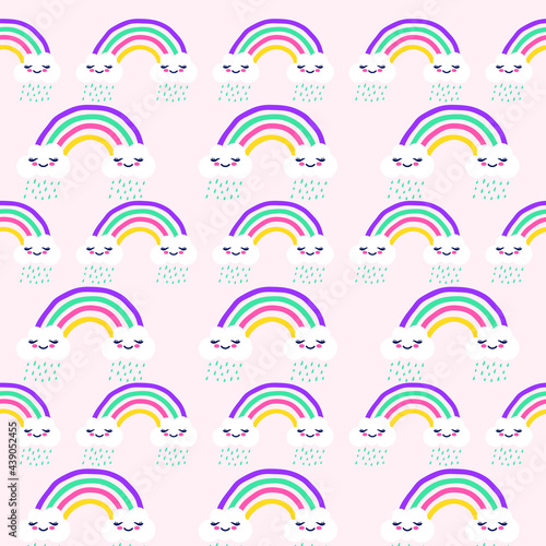 Obraz premium Hand drawn seamless pattern with rainbows and Trendy baby texture isolated on...