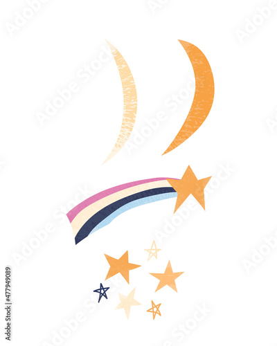 © VeraShikha, Obraz premium Hand drawn set of moon and stars with texture. Modern vector illustration isolated on white background
