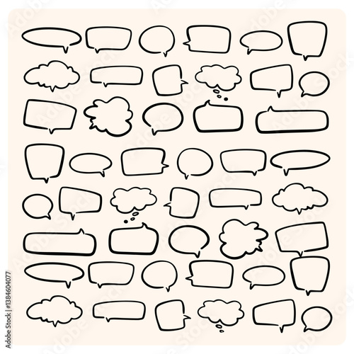 Obraz premium Hand drawn set of speech bubbles with doodle style drawing background cream