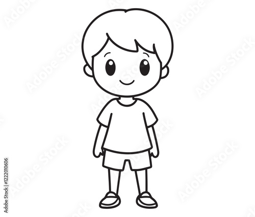 © Md.Riaz, Obraz premium Hand drawn single line art coloring page kids, Boy cartoon character