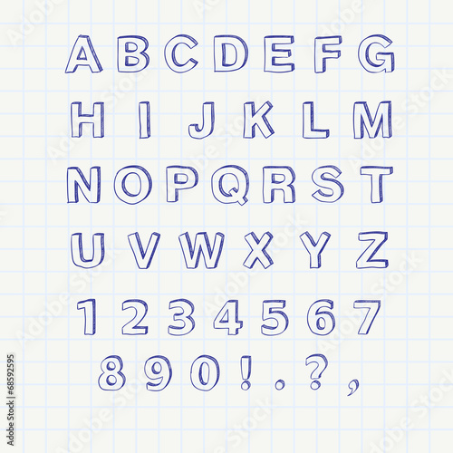 © staskhom, Fototapeta premium Hand drawn sketch alphabet. Vector illustration.