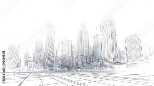 © Raitalinn, Fototapeta premium Hand Drawn Sketch Cityscape Modern Architecture Urban Skyline Illustration