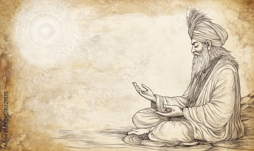 © Tunsale, Fototapeta premium Hand drawn sketch honoring Guru Purnima celebration. AI generated illustration.