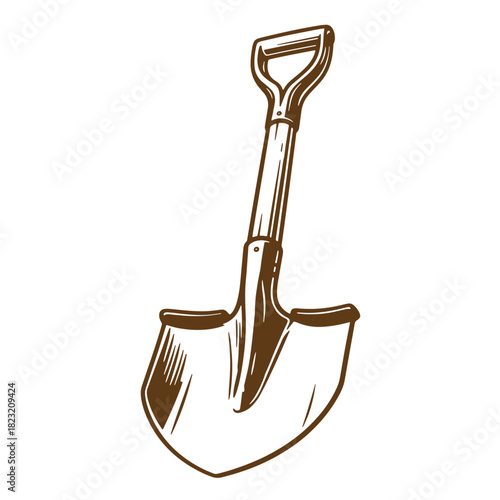 © vectorartdesigner, Fototapeta premium Hand-drawn sketch of a gardening shovel in brown tones on white background
