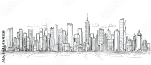 Obraz premium Hand drawn sketch of a modern city skyline.
