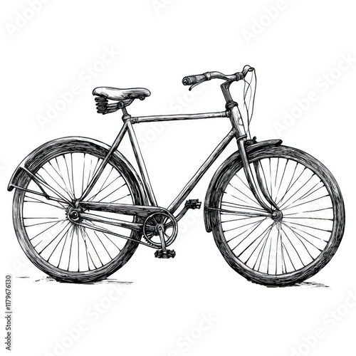 © AnyaWhy, Obraz premium Hand Drawn Sketch of Bicycle in Monochrome Isolated on White: A black-and-white hand-drawn sketch of a bicycle, isolated on a white background. Transparent background.