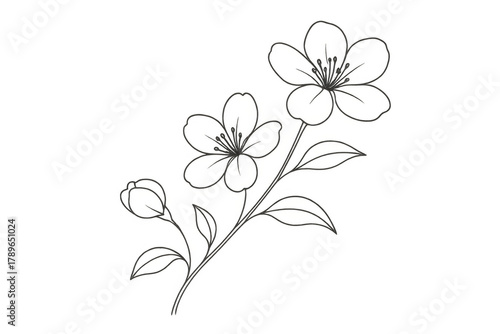 Fototapeta premium Hand drawn sketch of blooming flowers and leaves, a botanical plant...