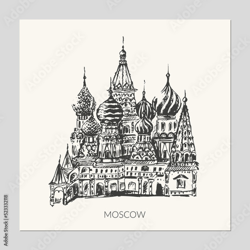 Naklejka premium Hand drawn sketch of St. Basil’s chathedral on the Red square.