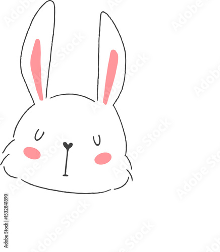 © vectorfusionart, Naklejka premium Hand-drawn sketch rabbit head and paws popping behind fluffy clouds on transparent background