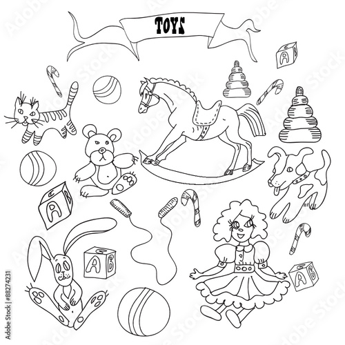 © TrishaMcmillan, Naklejka premium Hand drawn sketch set with toys.