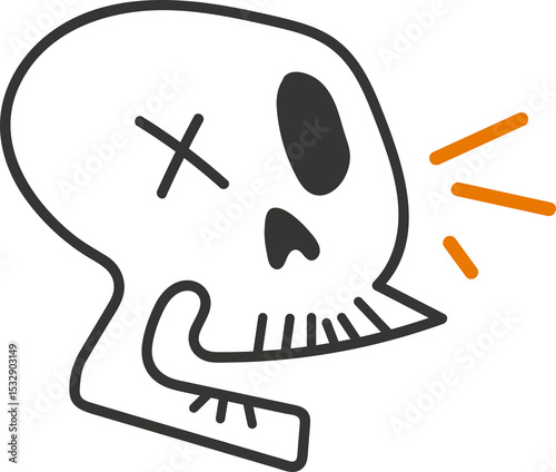 © vectorfusionart, Naklejka premium Hand-drawn skull is emitting sound on transparent backdrop, showing grey outlines and orange lines