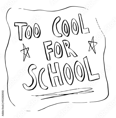 Naklejka premium hand-drawn slogan is showing TOO COOL FOR SCHOOL in wavy outline with stars,...