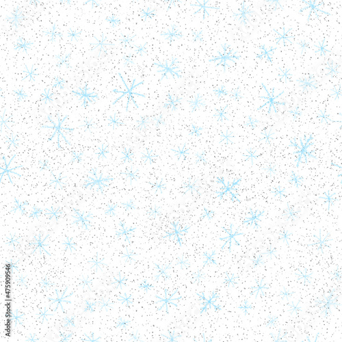 Fototapeta premium Hand Drawn Snowflakes Christmas Seamless Pattern. Subtle Flying Snow Flakes on chalk snowflakes Background. Alluring chalk handdrawn snow overlay. Artistic holiday season decoration.