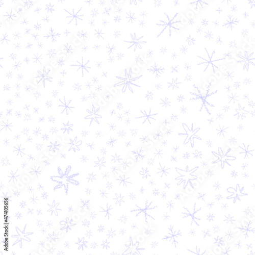 Fototapeta premium Hand Drawn Snowflakes Christmas Seamless Pattern. Subtle Flying Snow Flakes on chalk snowflakes Background. Alluring chalk handdrawn snow overlay. Magnetic holiday season decoration.