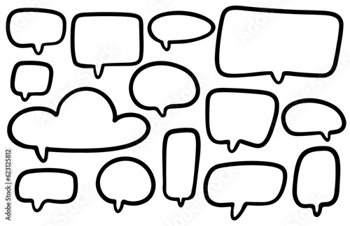 Obraz premium Hand drawn speech bubble. Set of empty cloud. Cartoon style. Doodle chat.