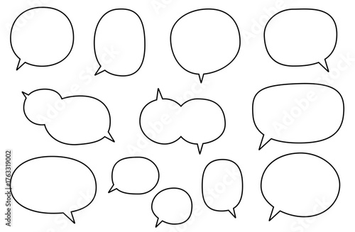 Obraz premium Hand-drawn speech bubble set – soft comic style on black background