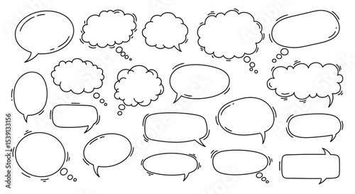 Fototapeta premium Hand-Drawn Speech Bubbles Collection of Outline Speech Balloons for Design...