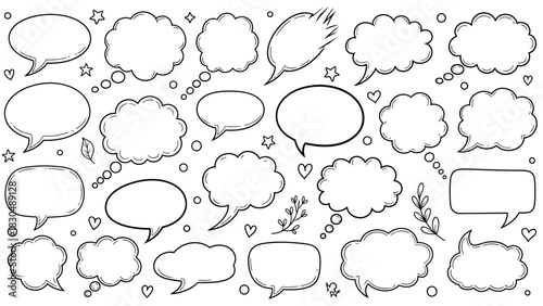 © Ashok, Fototapeta premium Hand drawn speech bubbles collection with doodle elements for communication and design