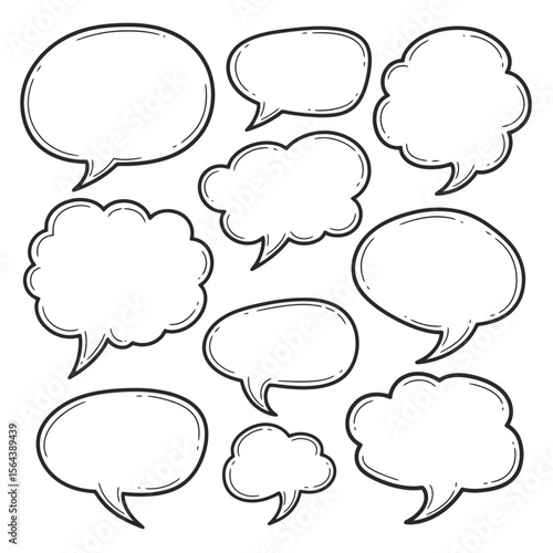 Fototapeta premium Hand-drawn Speech Bubbles & Thought Clouds Set. Doodle Comic Balloons for Dialogue, Chat, and Communication Design Elements.