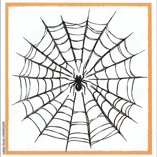 Obraz premium Hand-Drawn Spider and Web Illustration for Halloween Decor - Artistic...