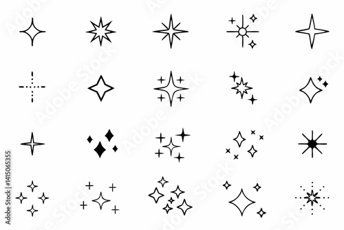 © Abid, Naklejka premium Hand-Drawn Star & Sparkle Doodles – Black & White Twinkle SVG Icons