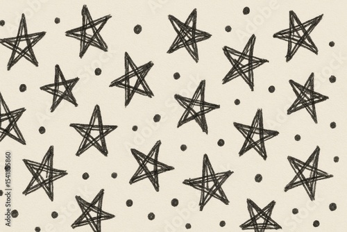 © Sakiyah, Fototapeta premium Hand-drawn stars and dots pattern on a beige background for creative projects and designs