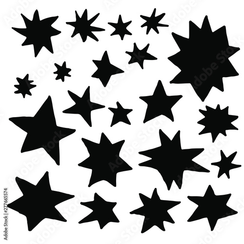 Fototapeta premium Hand drawn stars. Cute pen sketch space elements, simple geometric set.