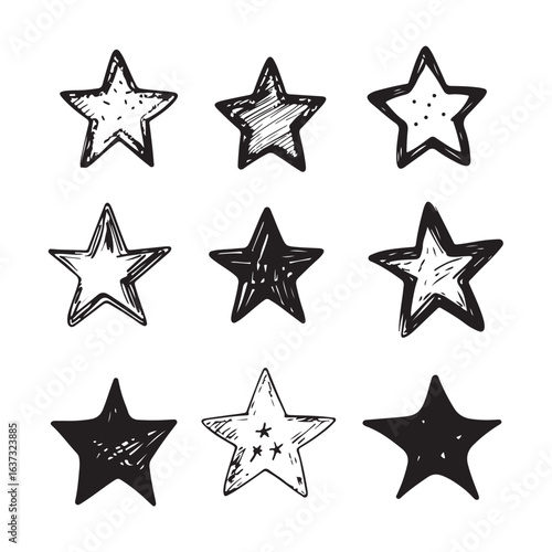 Obraz premium Hand drawn stars set. Doodle elements collection. Star symbols with grunge texture.