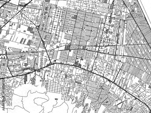 © W&S Stock, Fototapeta premium Hand-drawn style black and white city map of Coacalco, Mexico, ready for wall art or editorial projects.