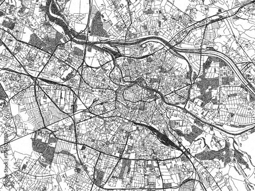 © W&S Stock, Fototapeta premium Hand-drawn style black and white city map of Wroclaw, Poland, ready for wall art or editorial projects.