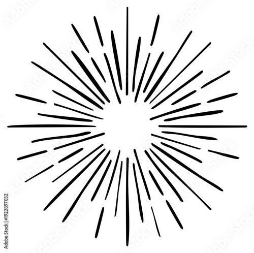 © Андрій О., Obraz premium Hand-drawn sunburst design element, radial rays graphic.