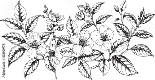 Fototapeta premium Hand-Drawn Tea Blossom Cluster