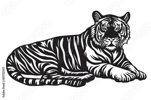 © Oksana_Latysheva, Fototapeta premium Hand drawn tiger silhouette in a minimal style. Black and white graphic illustration isolated on transparent background