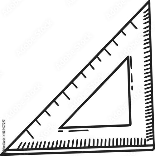 Fototapeta premium Hand drawn triangular ruler illustration geometry measuring tool, mathematics...