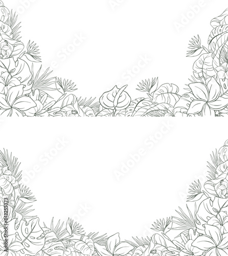 Fototapeta premium Hand Drawn Tropical Leaf and Flower Background