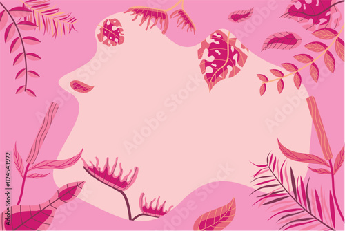 © Saepul, Fototapeta premium Hand drawn tropical leaves background
