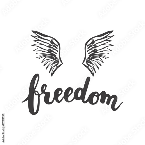 Obraz premium Hand drawn typography lettering phrase Freedom with birds wings on the white...