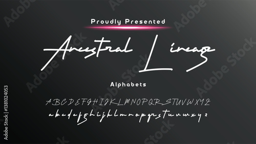 © Jon, Fototapeta premium Hand drawn vector alphabet. Modern monoline signature script font. Elegant Signature Font. Best Alphabet Beautiful Calligraphy Signature Font