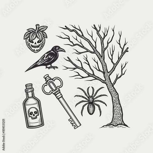 © Nk graphic23, Naklejka premium Hand drawn vector flowers illustration with birds and nature elements