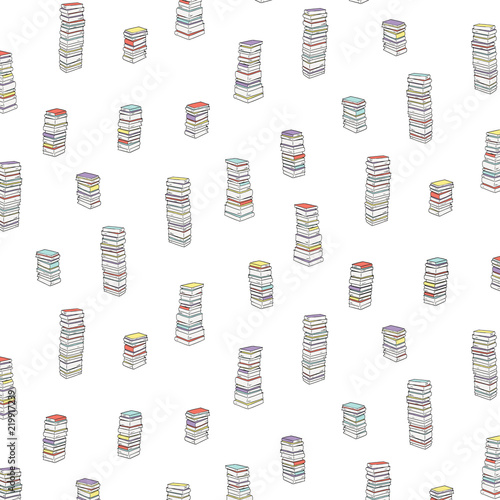 Fototapeta premium Hand drawn vector illustration of pile books pattern.