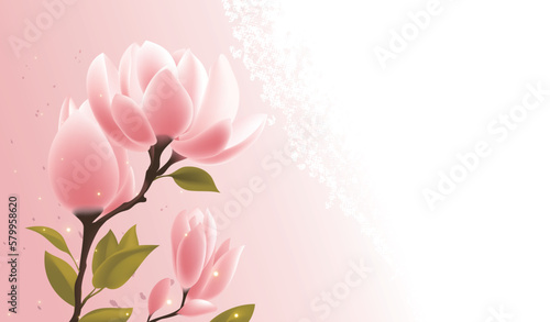 Naklejka premium Hand-drawn vector illustration of spring blooming pink magnolia