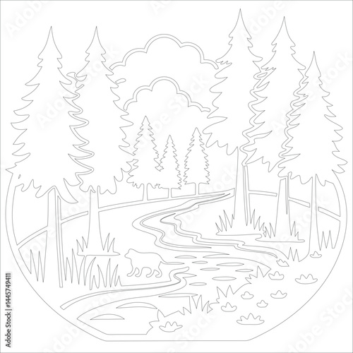 Obraz premium Hand-drawn vector landscape for coloring book layered illustration design