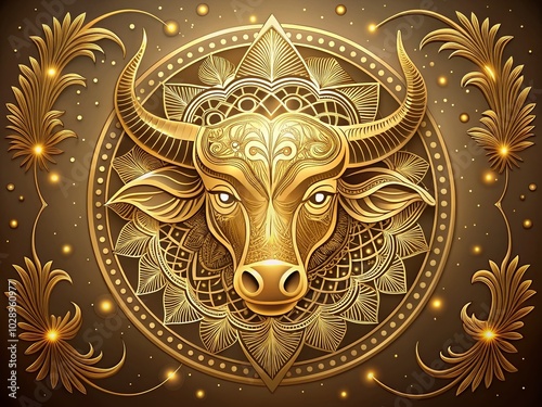 © Four888, Fototapeta premium Hand-Drawn Vector Taurus Zodiac Sign in Gold Color for Astrology Enthusiasts and Decor