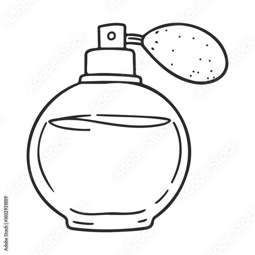 Obraz premium Hand-drawn vintage perfume bottle with atomizer and elegant design – stock...