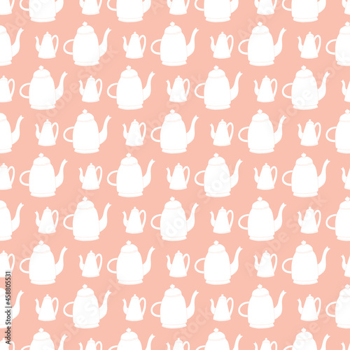 Obraz premium Hand drawn vintage tea cup and kettle seamless pattern.