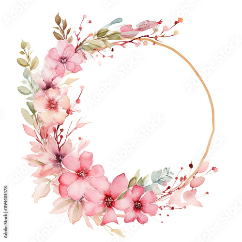 © AVADA, Naklejka premium Hand drawn watercolor flowers. Spring or summer wreath. Beautiful gentle flowers in the composition. Design for prints Watercolor Floral Wreath Isolated