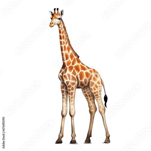 Naklejka premium Hand Drawn Watercolor Giraffe Clip Art Illustration. Isolated elements on a white background.