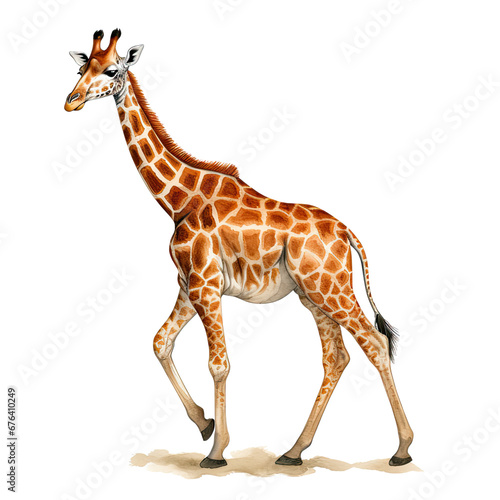 Obraz premium Hand Drawn Watercolor Giraffe Walking Clip Art Illustration. Isolated...