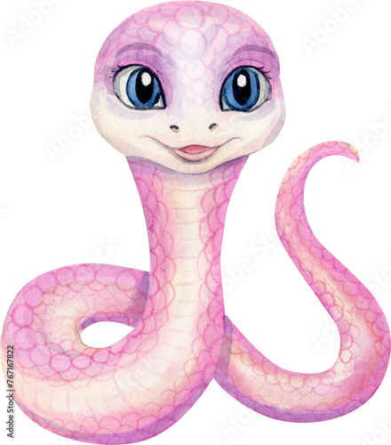 © NataliaArkusha, Fototapeta premium Hand Drawn Watercolor Illustration Of Cute Cartoon Snake